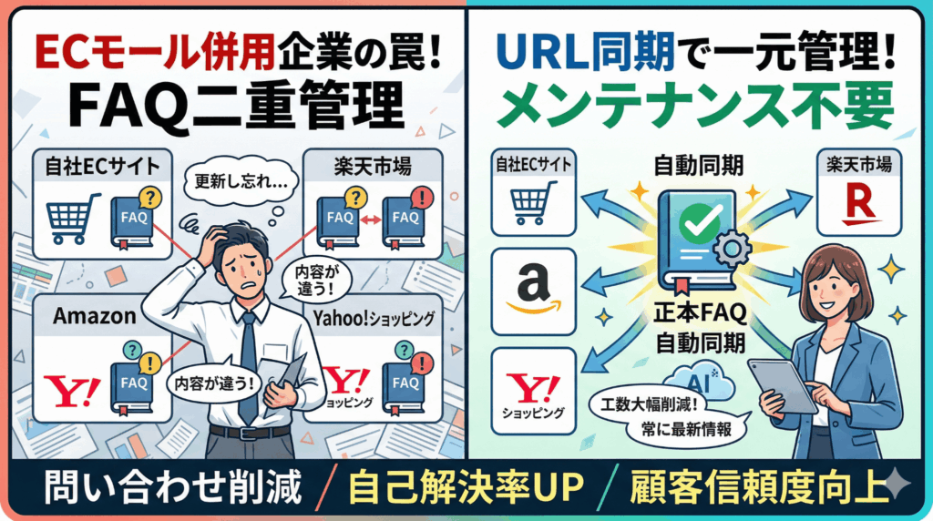 ECモールと自社ECのFAQ運用を一元化する方法|二重管理から脱却するには