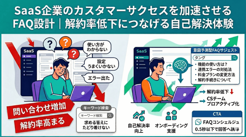 SaaS企業のカスタマーサクセスを加速させるFAQ設計|解約率低下につなげる自己解決体験