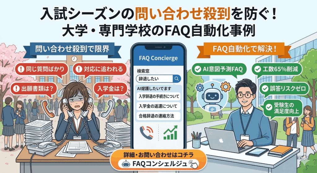入試シーズンの問い合わせ殺到を防ぐ|大学・専門学校のFAQ自動化事例